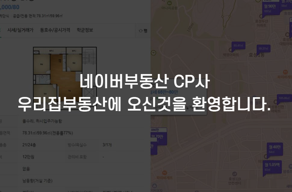 안녕하세요! 우리집 부동산은 네이버 부동산에 매물을 전송시킬 수 있는 부동산 광고 플랫폼입니다.